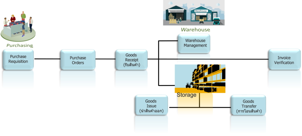 - การจัดซื้อ ช่วยจัดการเกี่ยวกับการส่งคำร้องขอซื้อสินค้า (PO) และออกใบเสร็จเชื่อมโยงเอกสารการสั่งซื้อทั้งระบบเพื่อประโยชน์ในการตรวจสอบบัญชี