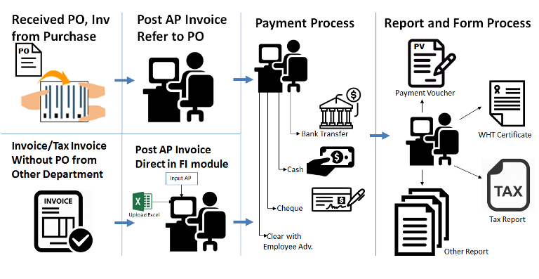 - การออกใบแจ้งหนี้ ช่วยจัดการเกี่ยวกับการยกเลิกสินค้า และใบลดหนี้โดยการอ้างอิงกับ PO